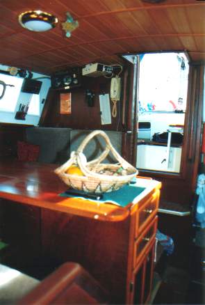 salonein.jpg Blick aus Salon zum Cockpit. Vorderfront des Tisches mit Geschirr- schrank u. Schubladen. Li. hinten Nav-Ecke mit UKW, Tochterinstr., Autopilot, Uhren usw. 18.02 Kb |